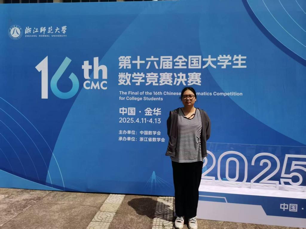 4月11日至13日,由中国数学会举办的第十六届全国大学生数学竞赛决赛在浙江师范大学举行。我校2022级数学与应用数学专业章惠娟获得数学类(高年级组)三等奖。