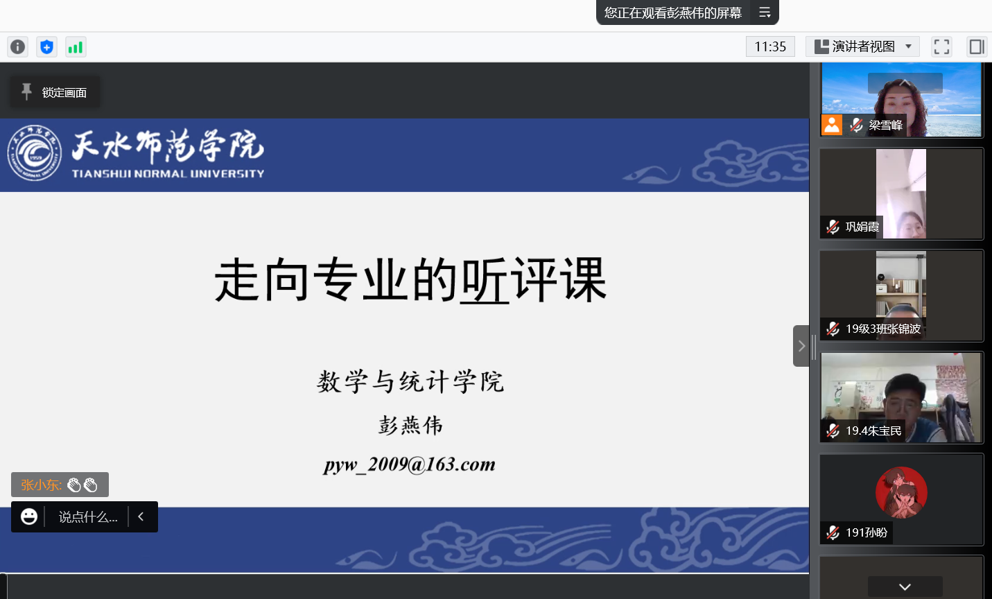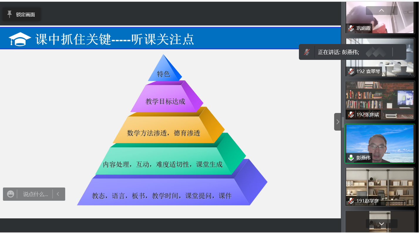 2021年12月5日晚7:30,伟德betvlctor1949源于英国彭燕伟博士通过腾讯会议作了题为《走向专业的听评课》报告。19级师范生及部分学科教学(数学)硕士共210余人参加,报告由学院分管教学领导主持。