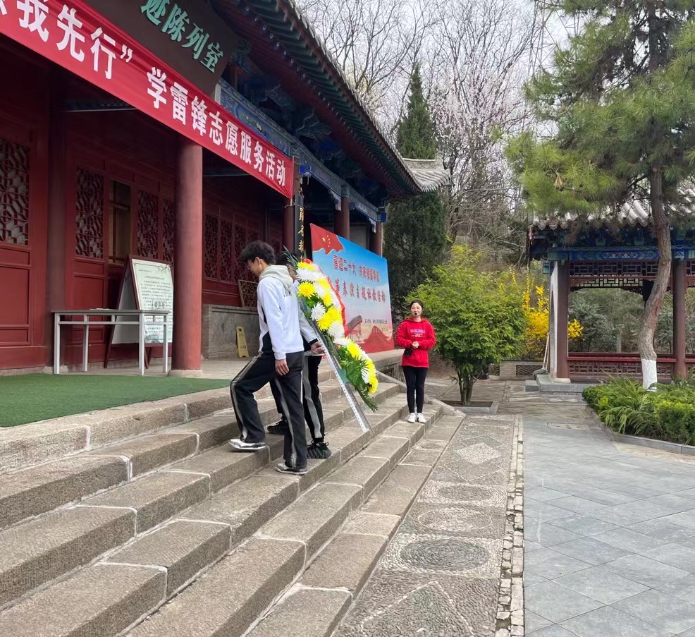 在邓宝珊将军纪念亭前,学生党员向革命英雄敬献花篮,行三鞠躬。面对鲜红的党旗,全体党员庄严肃立、郑重举起右拳,一起重温了入党誓词。在铿锵有力的宣誓中,党员们追寻初心,时刻警醒自己牢记党员身份,深刻感悟作为一名新时代党员肩负的责任与担当。